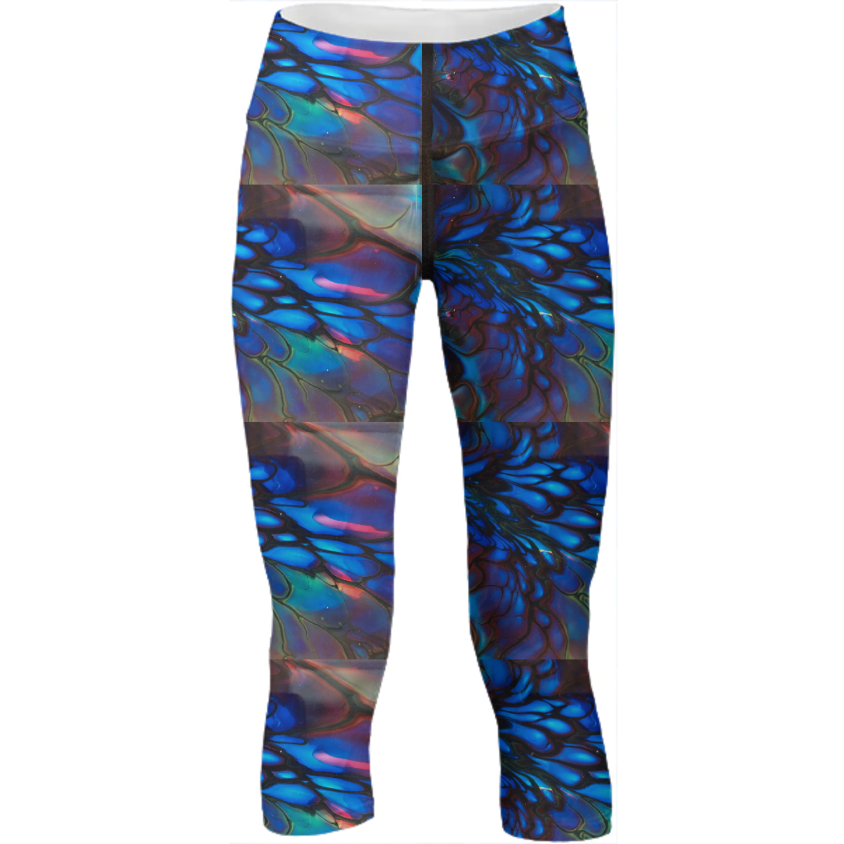 Mid calf length stretch yoga pants with an extra tall waistband for comfort and flexibility during workout.
