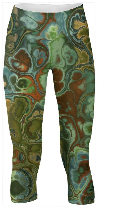 Mid calf length stretch yoga pants with an extra tall waistband for comfort and flexibility during workout.