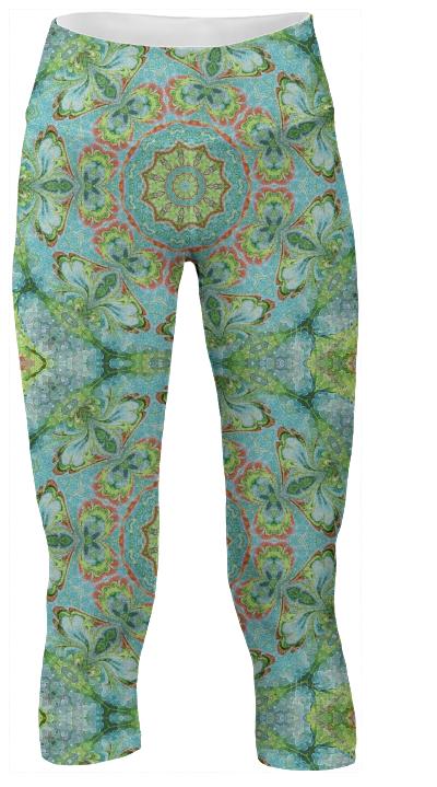 Mid calf length stretch yoga pants with an extra tall waistband for comfort and flexibility during workout.