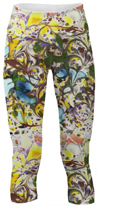 Mid calf length stretch yoga pants with an extra tall waistband for comfort and flexibility during workout.