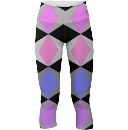 Mid calf length stretch yoga pants with an extra tall waistband for comfort and flexibility during workout.