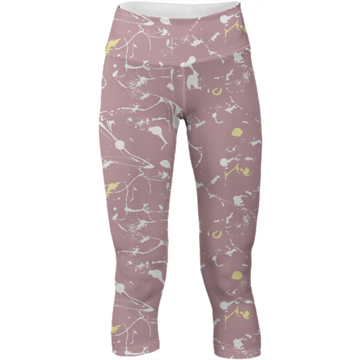 Mid calf length stretch yoga pants with an extra tall waistband for comfort and flexibility during workout.