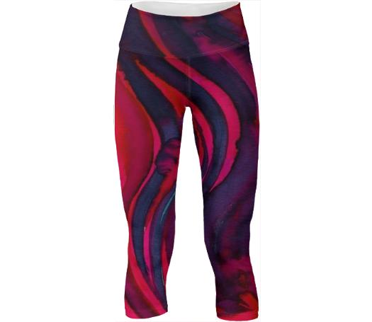 Mid calf length stretch yoga pants with an extra tall waistband for comfort and flexibility during workout.
