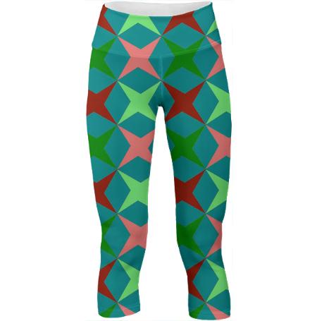 Mid calf length stretch yoga pants with an extra tall waistband for comfort and flexibility during workout.