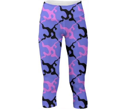 Mid calf length stretch yoga pants with an extra tall waistband for comfort and flexibility during workout.
