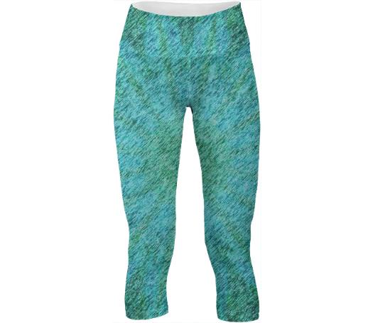 Mid calf length stretch yoga pants with an extra tall waistband for comfort and flexibility during workout.