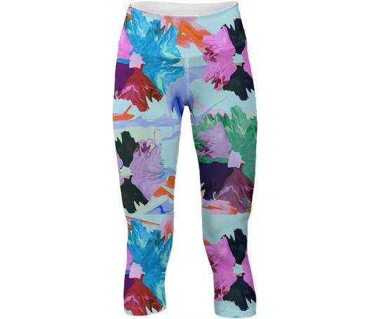 Mid calf length stretch yoga pants with an extra tall waistband for comfort and flexibility during workout.