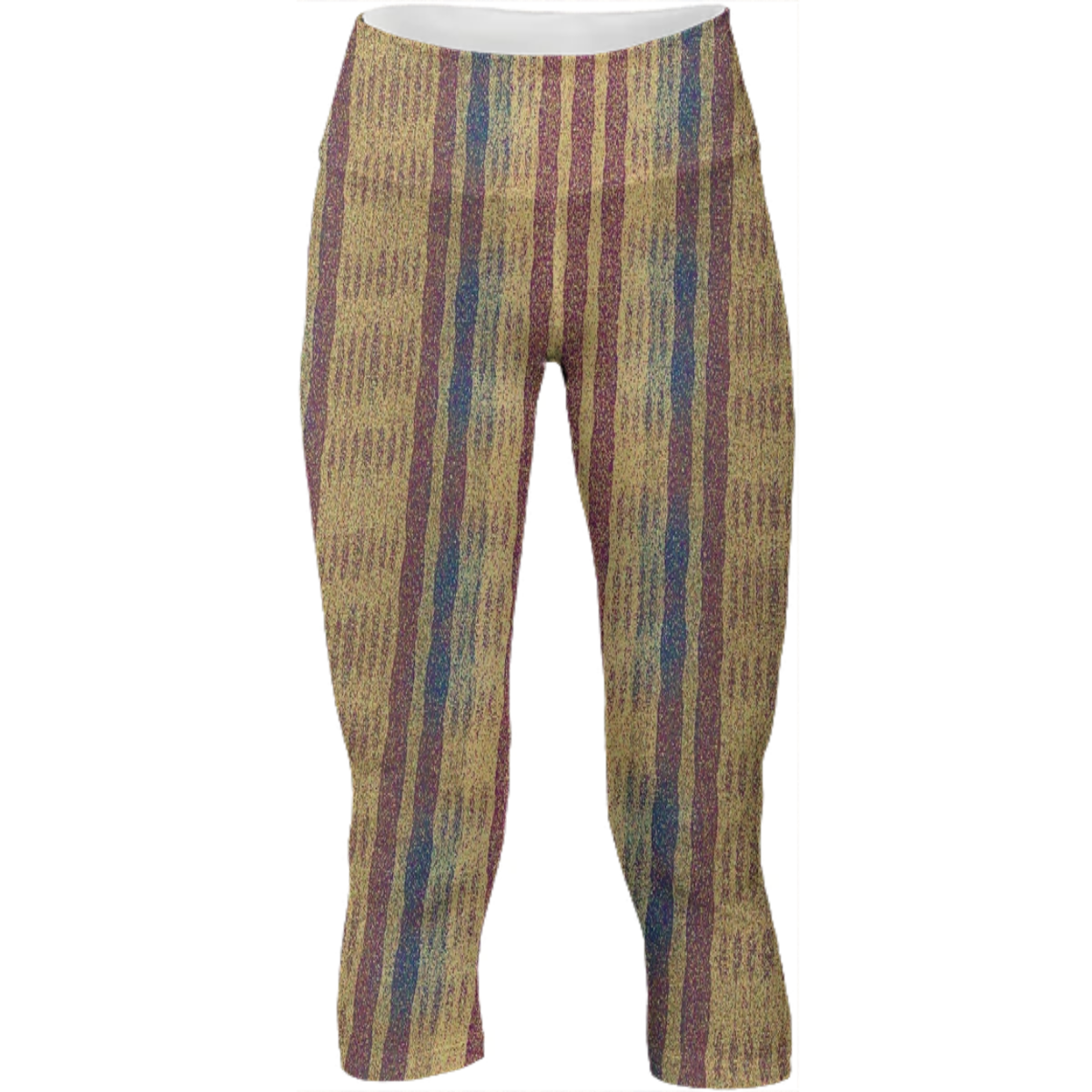 Mid calf length stretch yoga pants with an extra tall waistband for comfort and flexibility during workout.