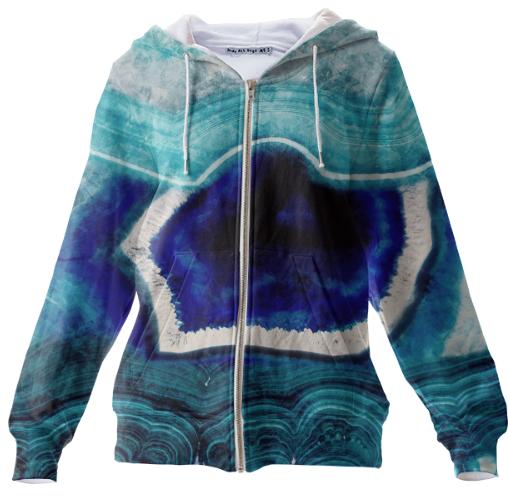 Abstract Blue Agates Zip Up Hoodie