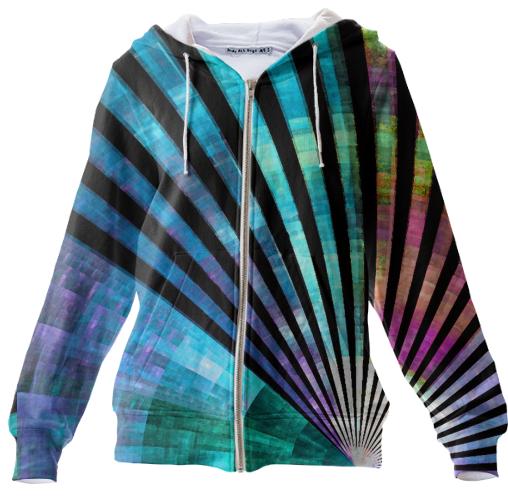 Slim fitting zip up hoodie with front kangaroo pockets metal zipper and drawstring hood.