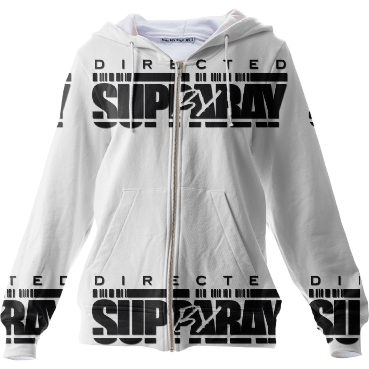 Slim fitting zip up hoodie with front kangaroo pockets metal zipper and drawstring hood.