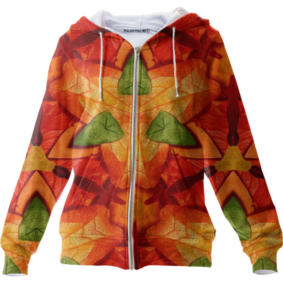Slim fitting zip up hoodie with front kangaroo pockets metal zipper and drawstring hood.
