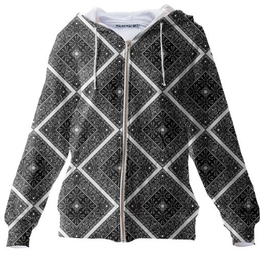 Slim fitting zip up hoodie with front kangaroo pockets metal zipper and drawstring hood.