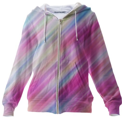 Slim fitting zip up hoodie with front kangaroo pockets metal zipper and drawstring hood.