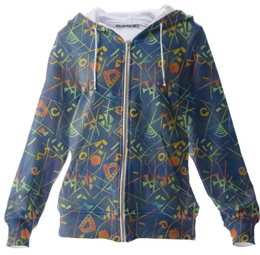 Slim fitting zip up hoodie with front kangaroo pockets metal zipper and drawstring hood.