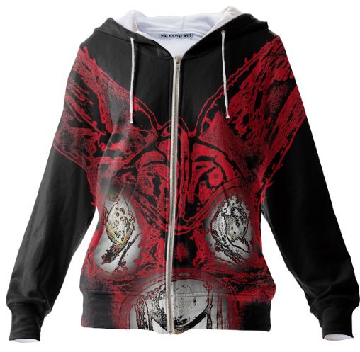 Slim fitting zip up hoodie with front kangaroo pockets metal zipper and drawstring hood.