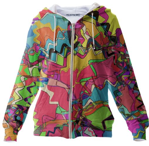 Slim fitting zip up hoodie with front kangaroo pockets metal zipper and drawstring hood.