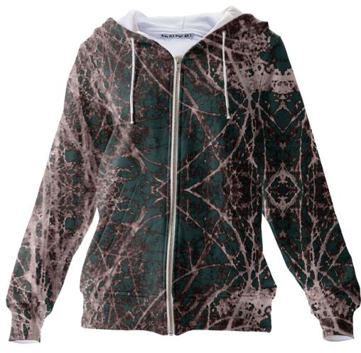 Slim fitting zip up hoodie with front kangaroo pockets metal zipper and drawstring hood.