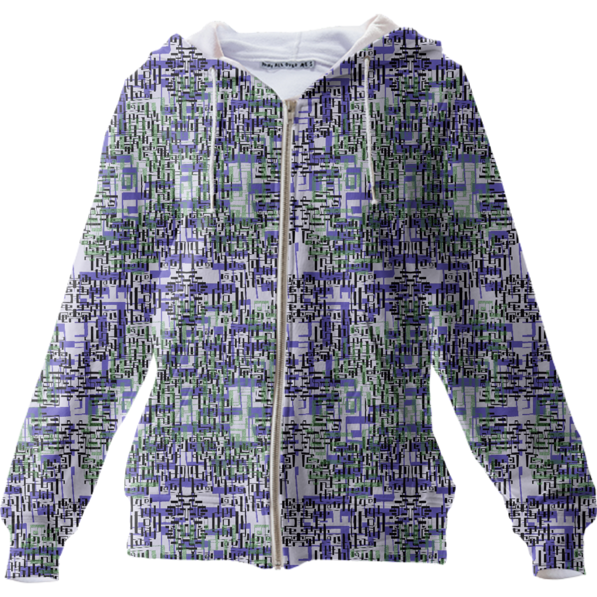 Slim fitting zip up hoodie with front kangaroo pockets metal zipper and drawstring hood.