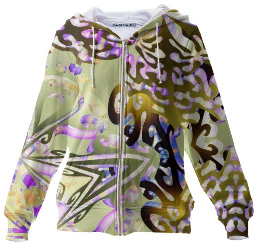 Slim fitting zip up hoodie with front kangaroo pockets metal zipper and drawstring hood.