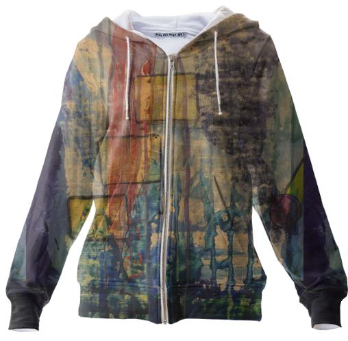 Slim fitting zip up hoodie with front kangaroo pockets metal zipper and drawstring hood.
