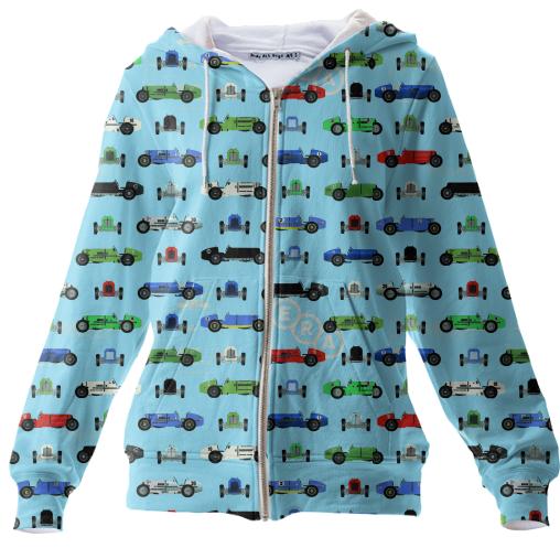 Slim fitting zip up hoodie with front kangaroo pockets metal zipper and drawstring hood.