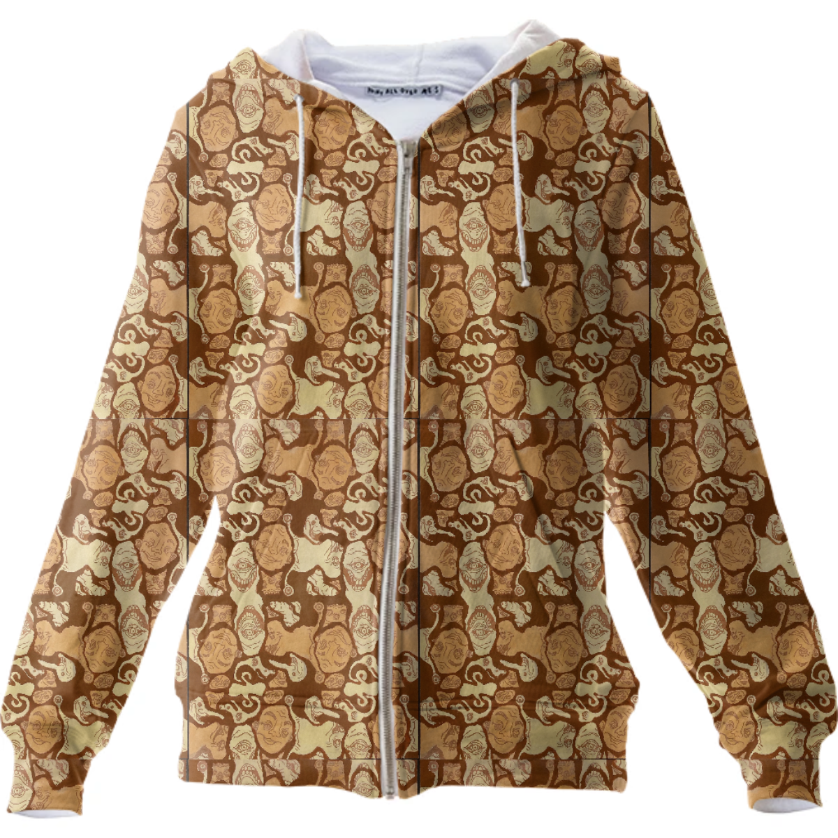 Slim fitting zip up hoodie with front kangaroo pockets metal zipper and drawstring hood.