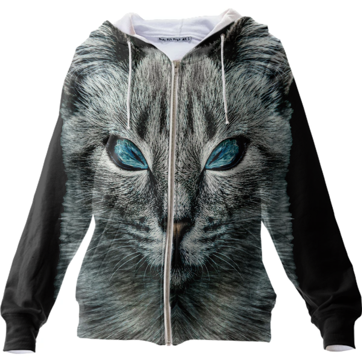 Slim fitting zip up hoodie with front kangaroo pockets metal zipper and drawstring hood.