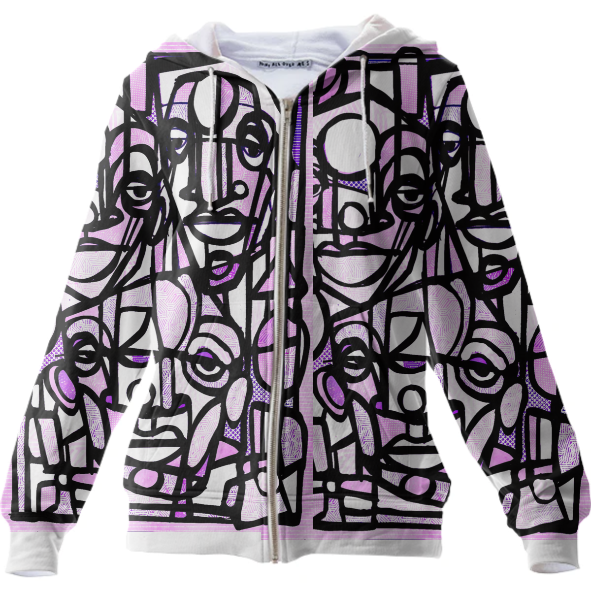 Slim fitting zip up hoodie with front kangaroo pockets metal zipper and drawstring hood.