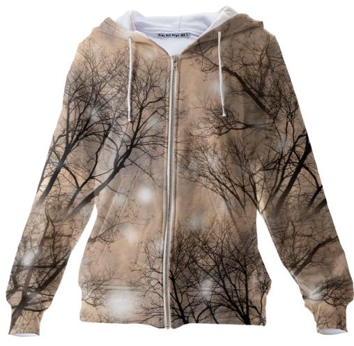 Slim fitting zip up hoodie with front kangaroo pockets metal zipper and drawstring hood.