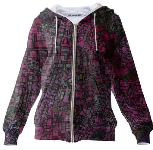 Slim fitting zip up hoodie with front kangaroo pockets metal zipper and drawstring hood.