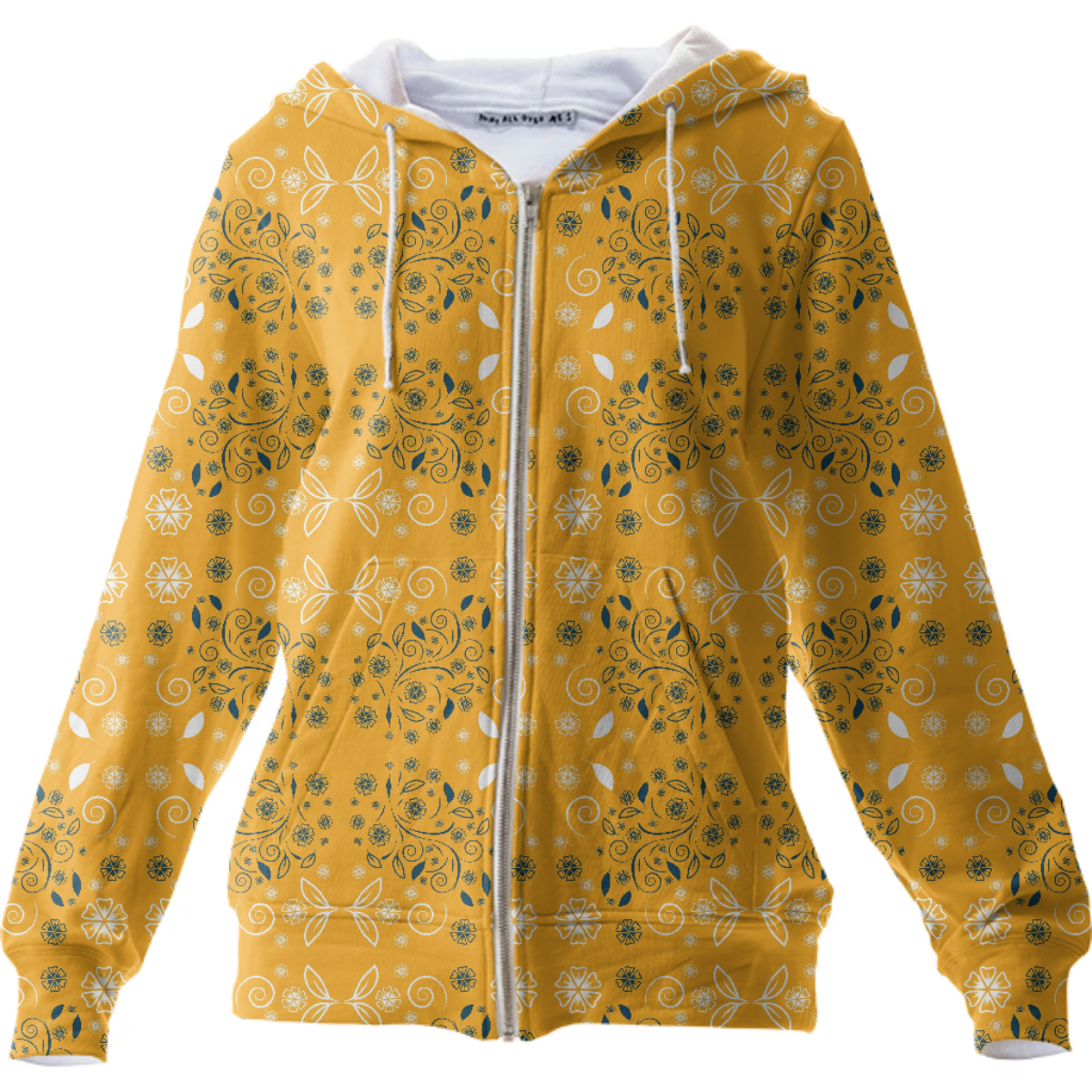 Slim fitting zip up hoodie with front kangaroo pockets metal zipper and drawstring hood.