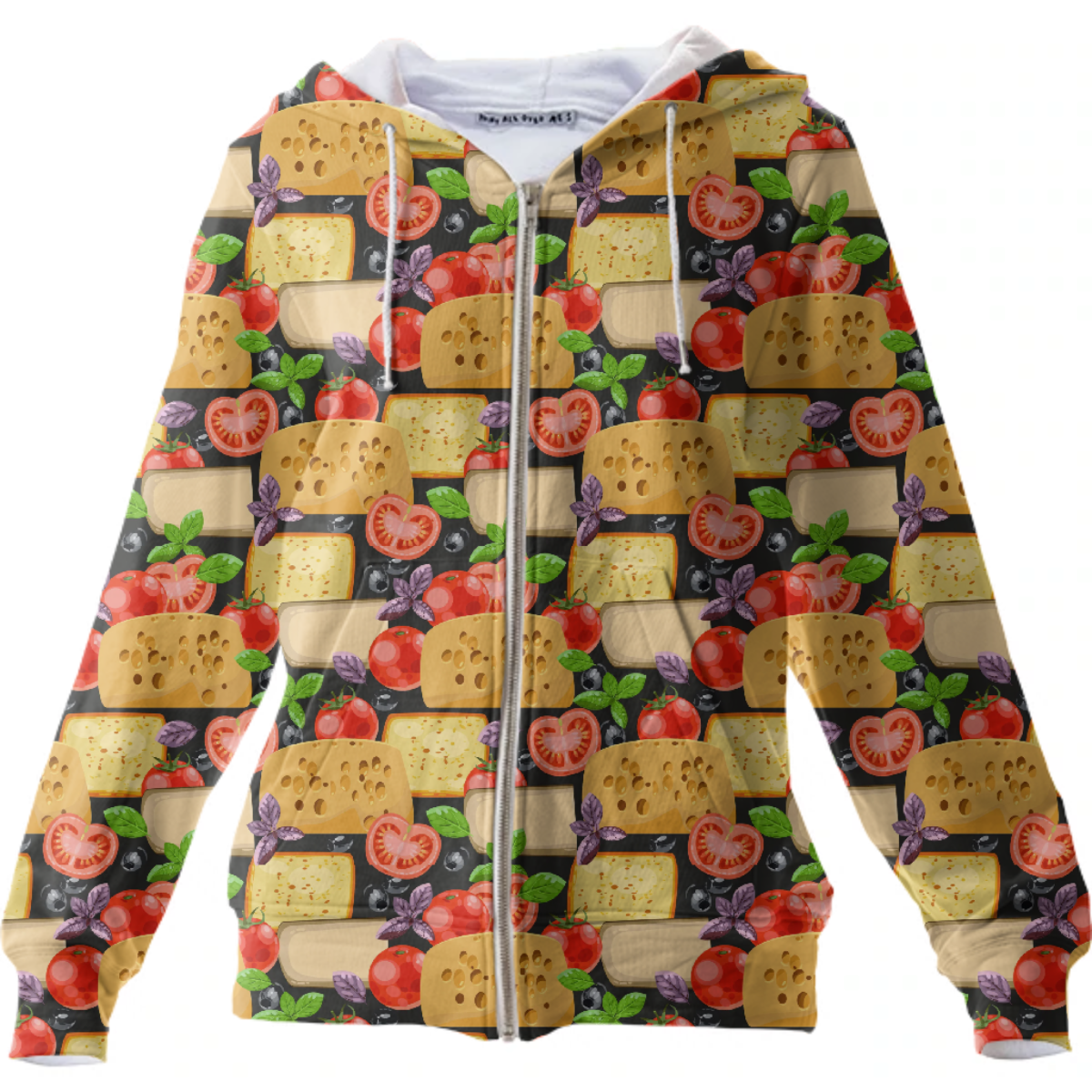 The uploaded file will be printed on the entire front and be mirrored on the back. Because of our cut and sew process some print elements on pockets seams and sleeves might not match up. For best results please upload a PNG or JPG with RGB color profile and dimensions of at least 35 inches width by 20 inches length. DPI can be as low as 72.