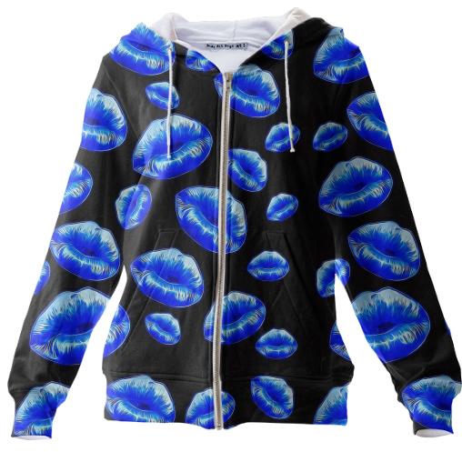 Florescent Blue Sassy Lips Hoodie