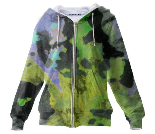 Slim fitting zip up hoodie with front kangaroo pockets metal zipper and drawstring hood.