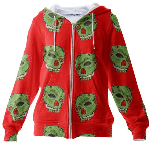 Slim fitting zip up hoodie with front kangaroo pockets metal zipper and drawstring hood.