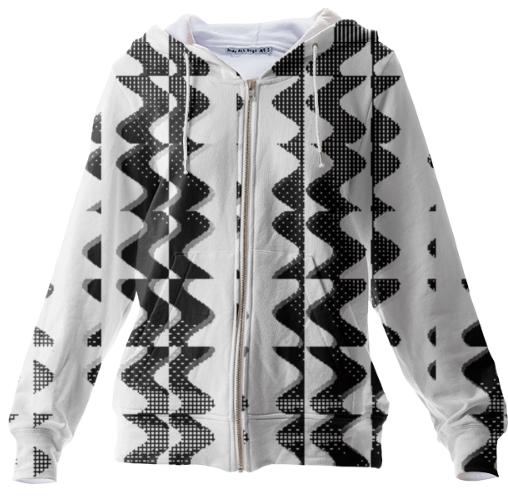 Slim fitting zip up hoodie with front kangaroo pockets metal zipper and drawstring hood.