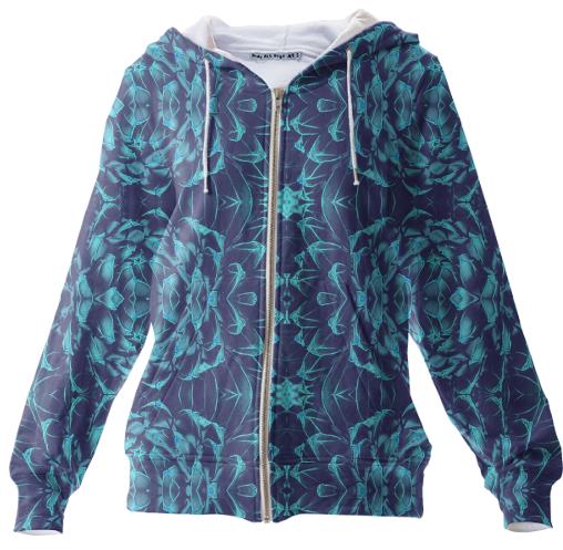 Slim fitting zip up hoodie with front kangaroo pockets metal zipper and drawstring hood.