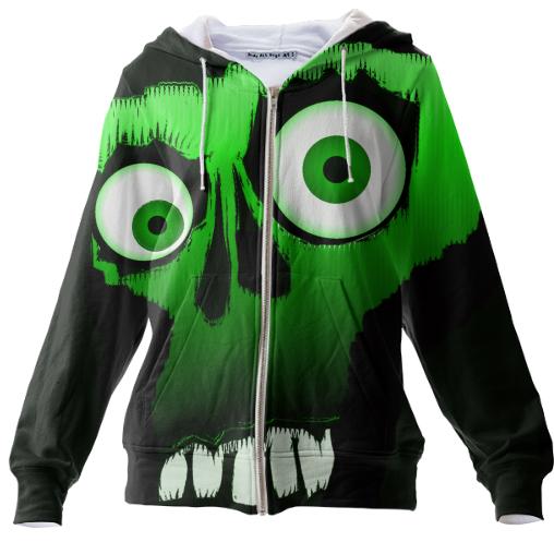 Slim fitting zip up hoodie with front kangaroo pockets metal zipper and drawstring hood.