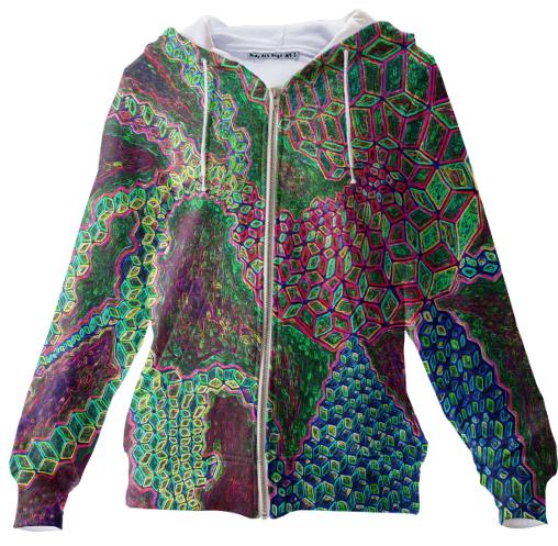 Slim fitting zip up hoodie with front kangaroo pockets metal zipper and drawstring hood.