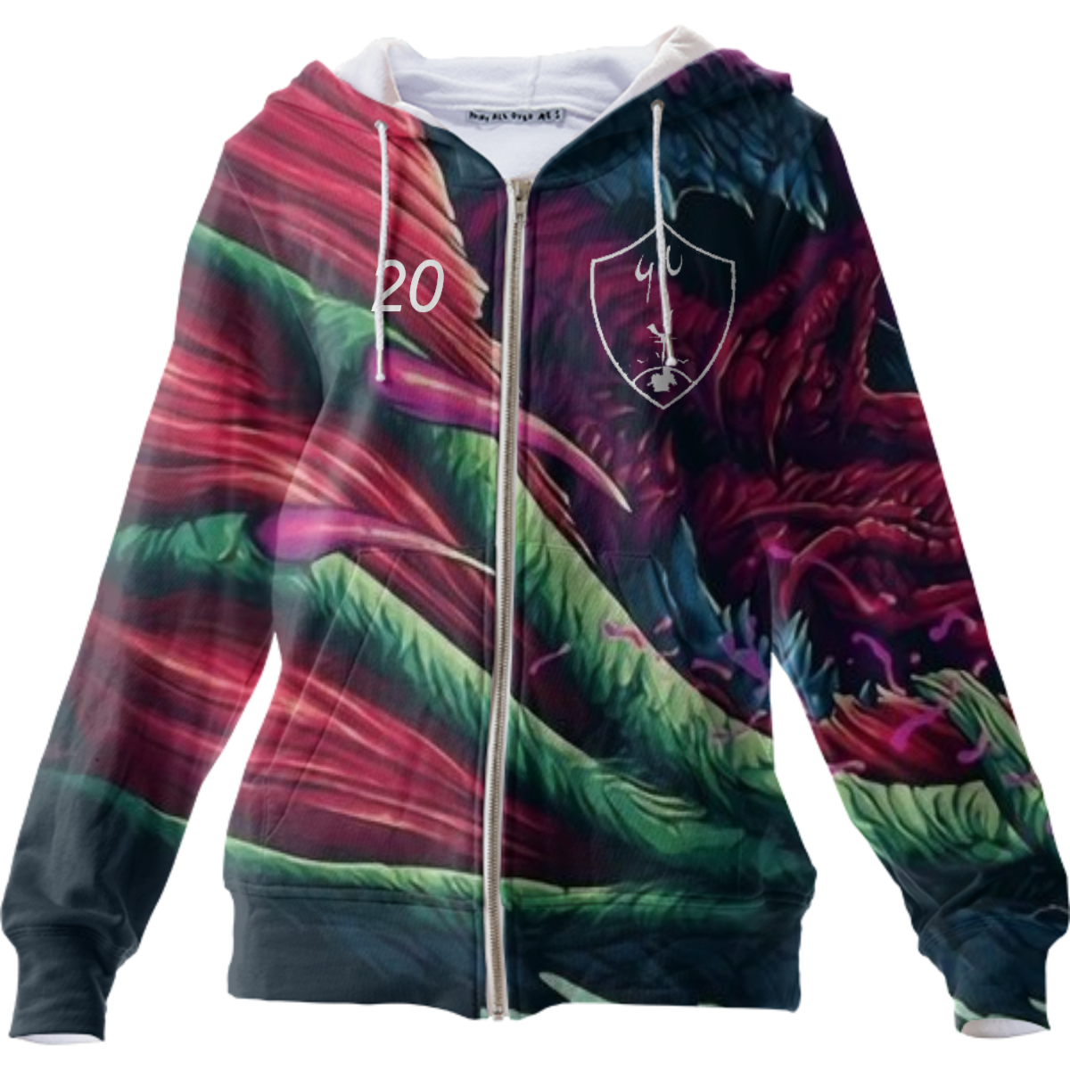 The uploaded file will be printed on the entire front and be mirrored on the back. Because of our cut and sew process some print elements on pockets seams and sleeves might not match up. For best results please upload a PNG or JPG with RGB color profile and dimensions of at least 35 inches width by 20 inches length. DPI can be as low as 72.