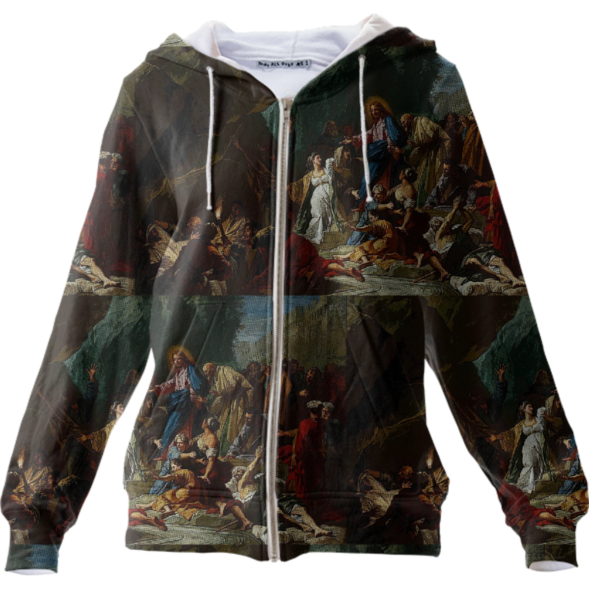 The uploaded file will be printed on the entire front and be mirrored on the back. Because of our cut and sew process some print elements on pockets seams and sleeves might not match up. For best results please upload a PNG or JPG with RGB color profile and dimensions of at least 35 inches width by 20 inches length. DPI can be as low as 72.