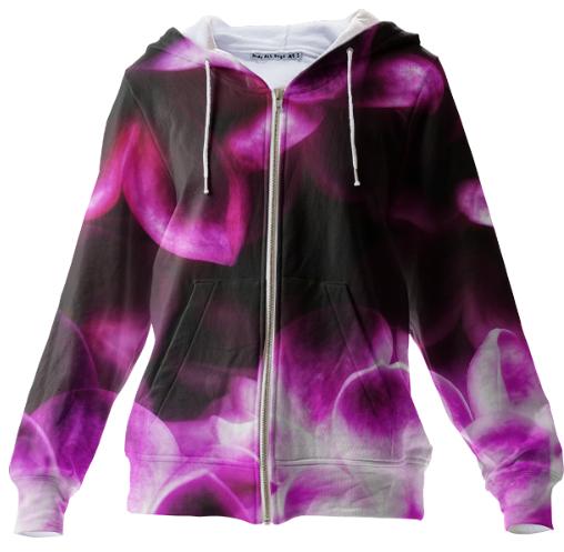 Slim fitting zip up hoodie with front kangaroo pockets metal zipper and drawstring hood.