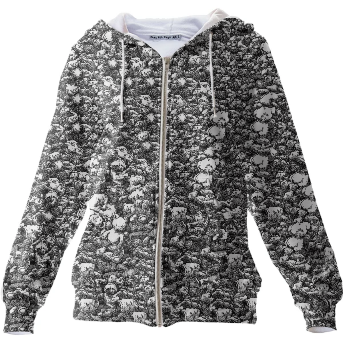 Slim fitting zip up hoodie with front kangaroo pockets metal zipper and drawstring hood.