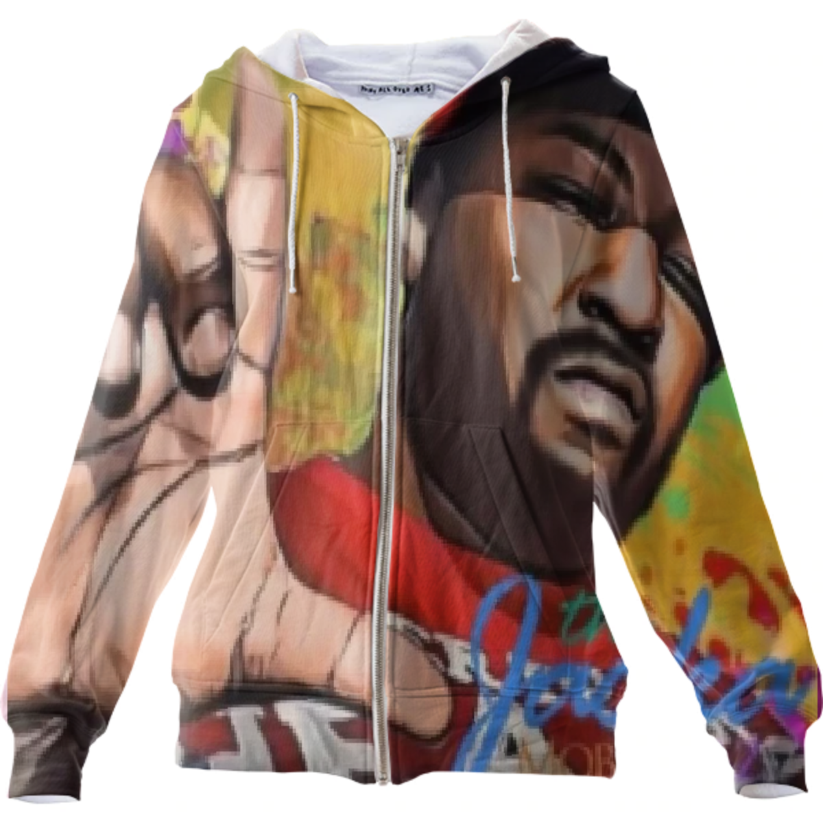 Slim fitting zip up hoodie with front kangaroo pockets metal zipper and drawstring hood.
