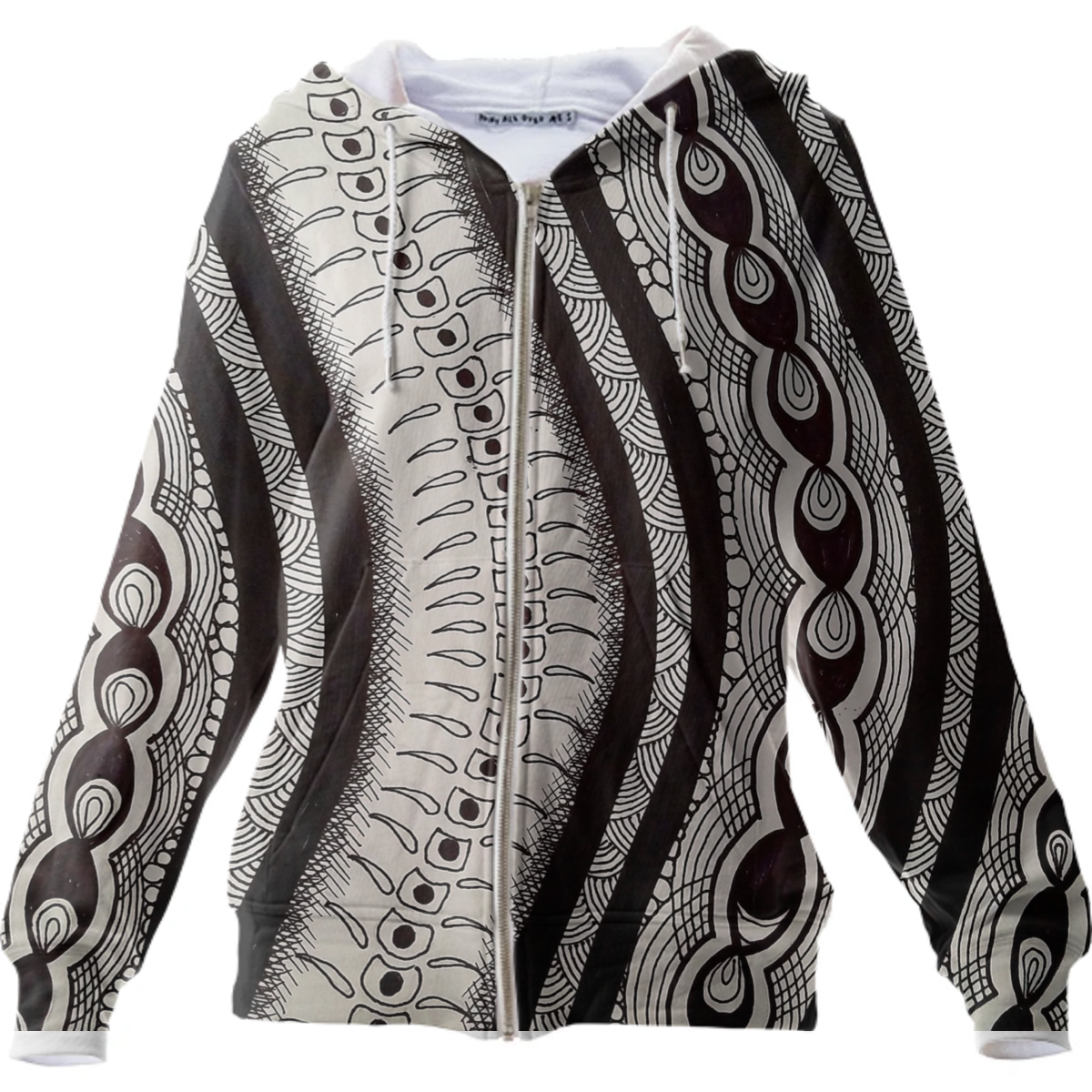 Slim fitting zip up hoodie with front kangaroo pockets metal zipper and drawstring hood.