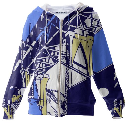 Slim fitting zip up hoodie with front kangaroo pockets metal zipper and drawstring hood.