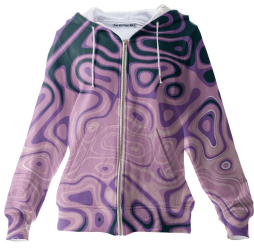 Slim fitting zip up hoodie with front kangaroo pockets metal zipper and drawstring hood.