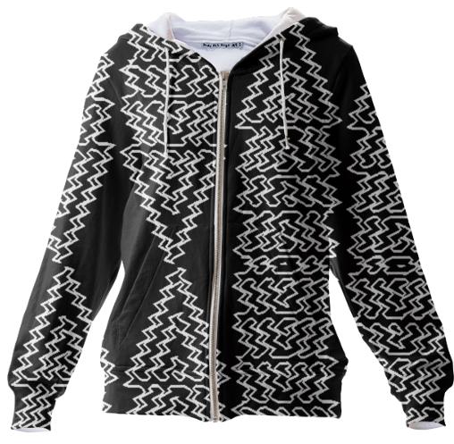 Slim fitting zip up hoodie with front kangaroo pockets metal zipper and drawstring hood.