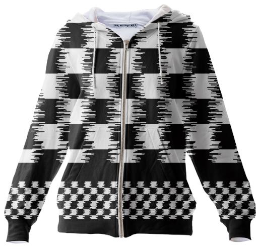 Slim fitting zip up hoodie with front kangaroo pockets metal zipper and drawstring hood.